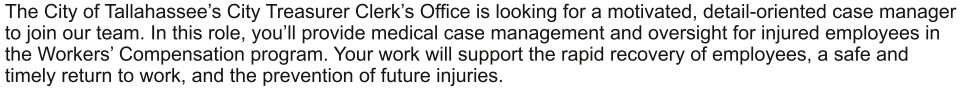 Job Opening: Risk Management Case Manager for the City of Tallahassee